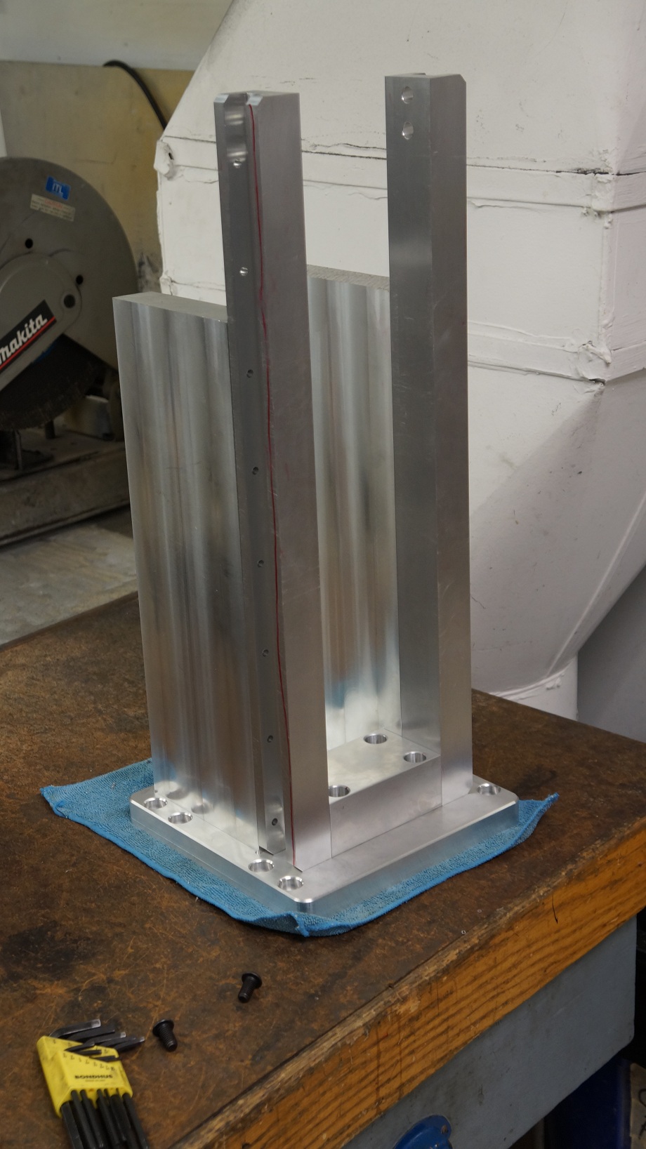 I think I'll do this a little bit differently in production; I'll eliminate a few components and try to machine the boxway surfaces directly into the column supports. That way there will be no alignment needed, assembly will be easier, and the mechanical accuracy and rigidity of the system will be improved.