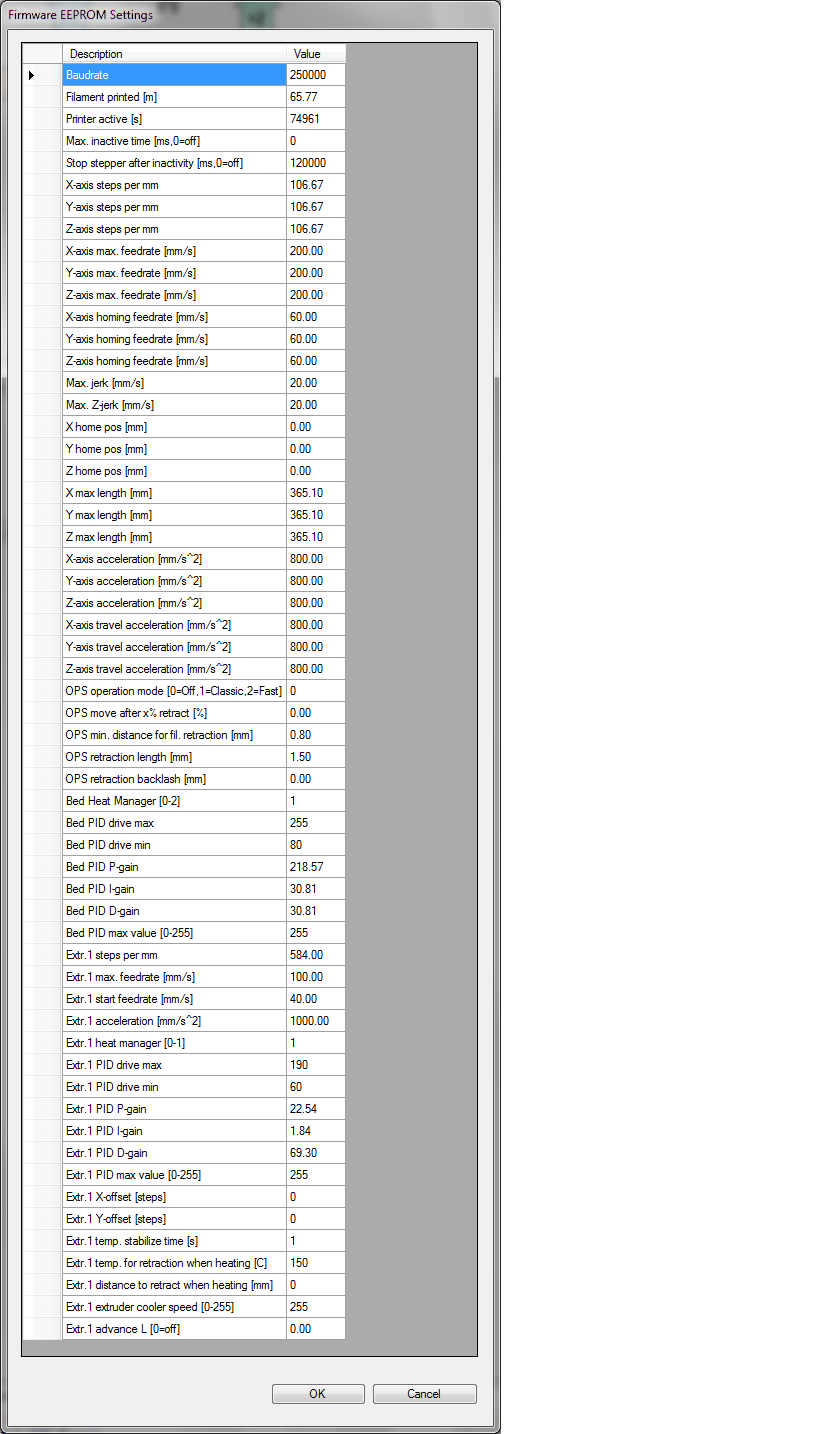 The only changes I have made are through the eeprom. I have metal 15 tooth pulleys not the newer 20 tooth and I have my steps at 106.67 which should be correct.