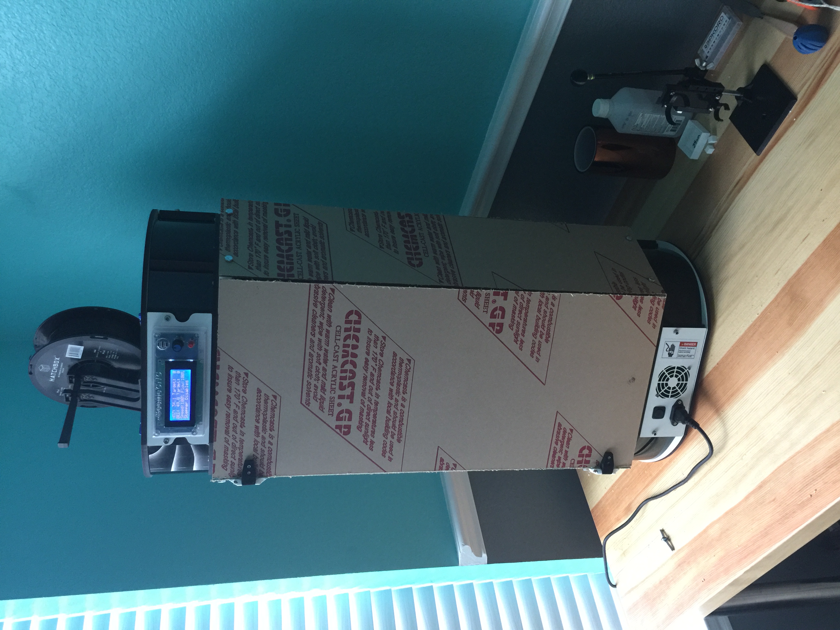 Some pics of the finished enclosure, it is working very well. Seems to be hold temp decently, although it could probably be improved.