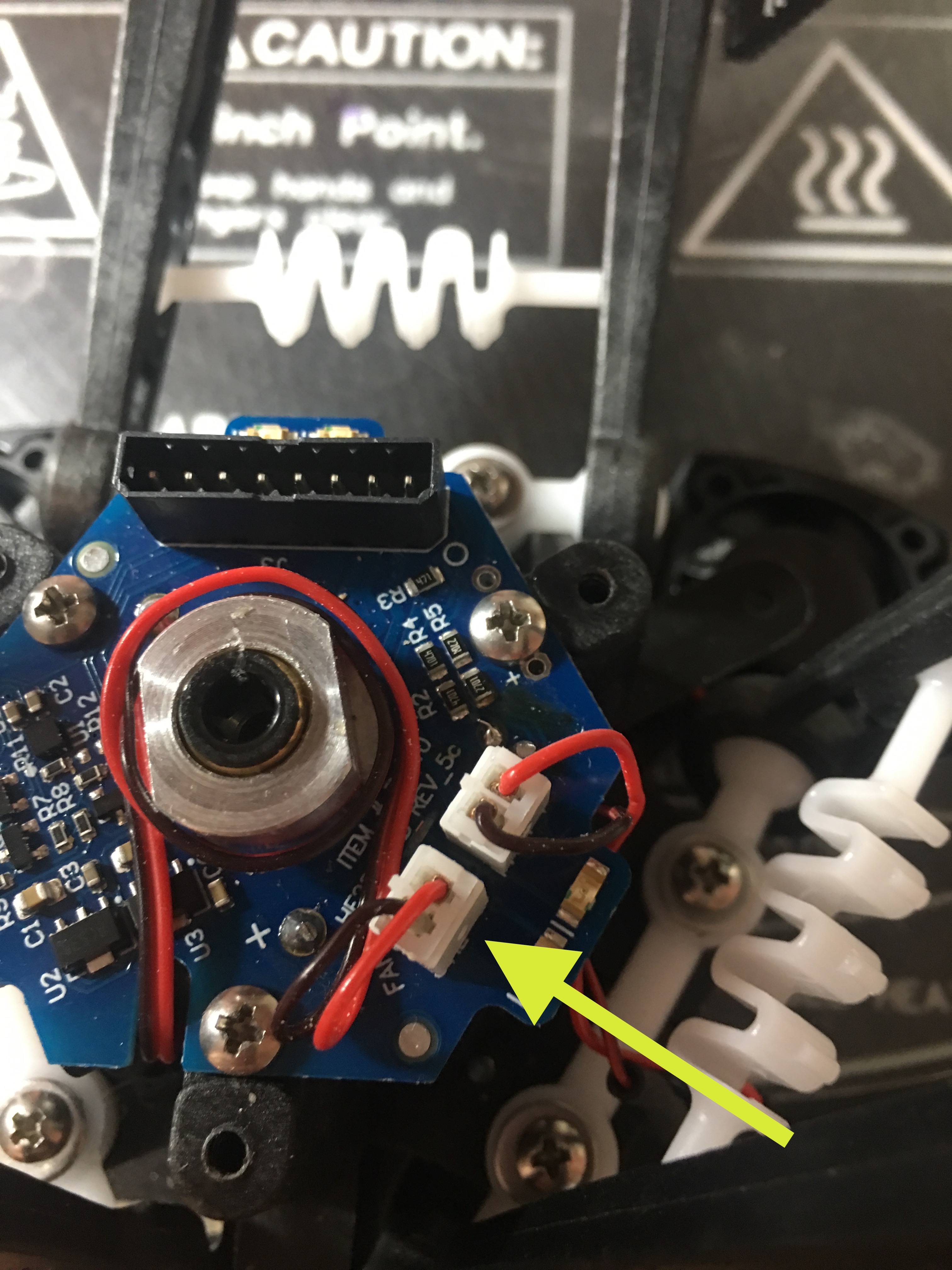 That's it! Before buttoning everything up, test to make sure the fan comes on at 40°. You will need to plug in the HE280 connector and then turn on the printer. Then set the hotend temperature (LCD display is easiest) to 150°C (the minimum it lets you set). Watch and listen. If the fan comes on at 40° turn the hot end off and turn off the printer.