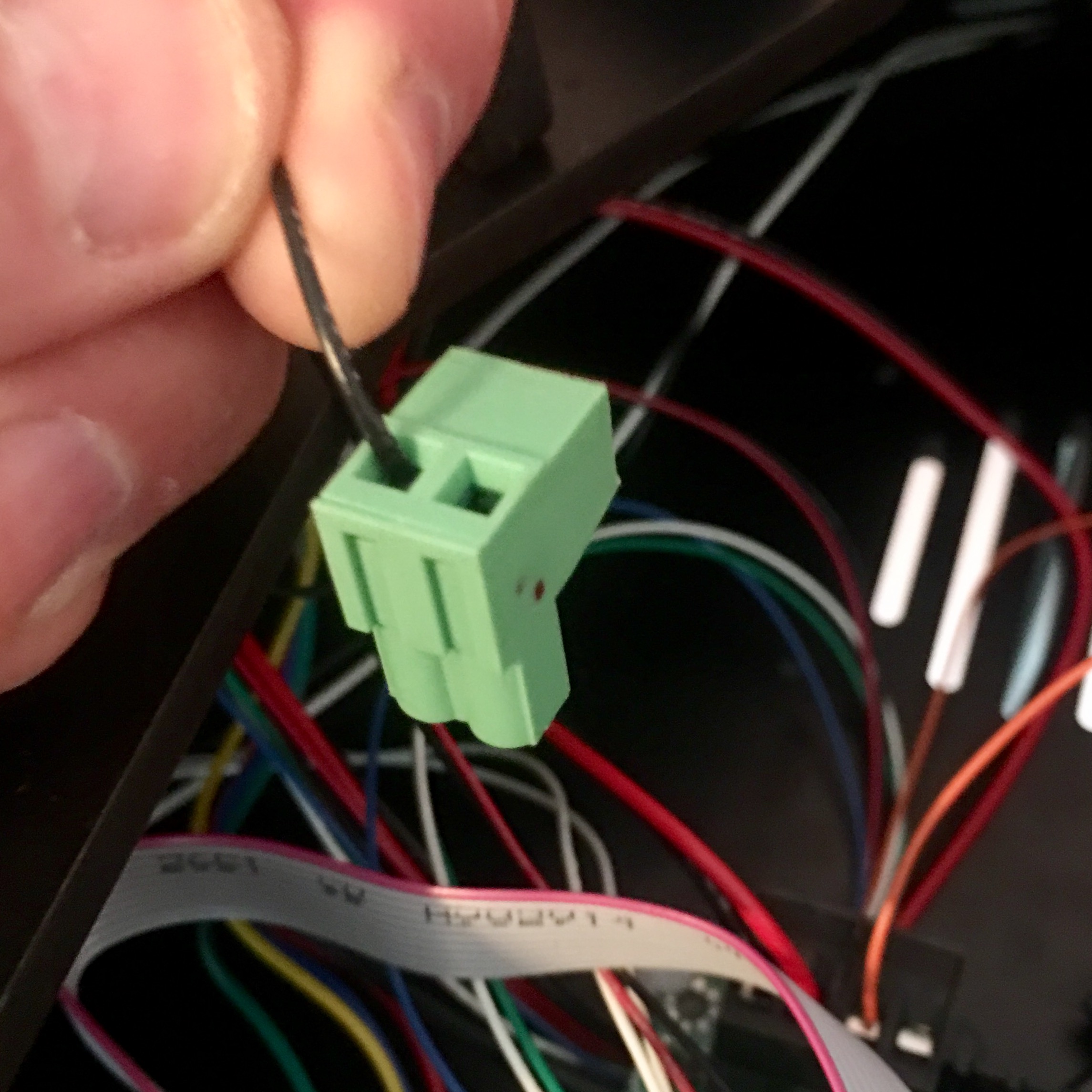 • one 2 prong electrical connector - there should be an extra in the RAMBo connector bag that came with your V3 - see photo below
