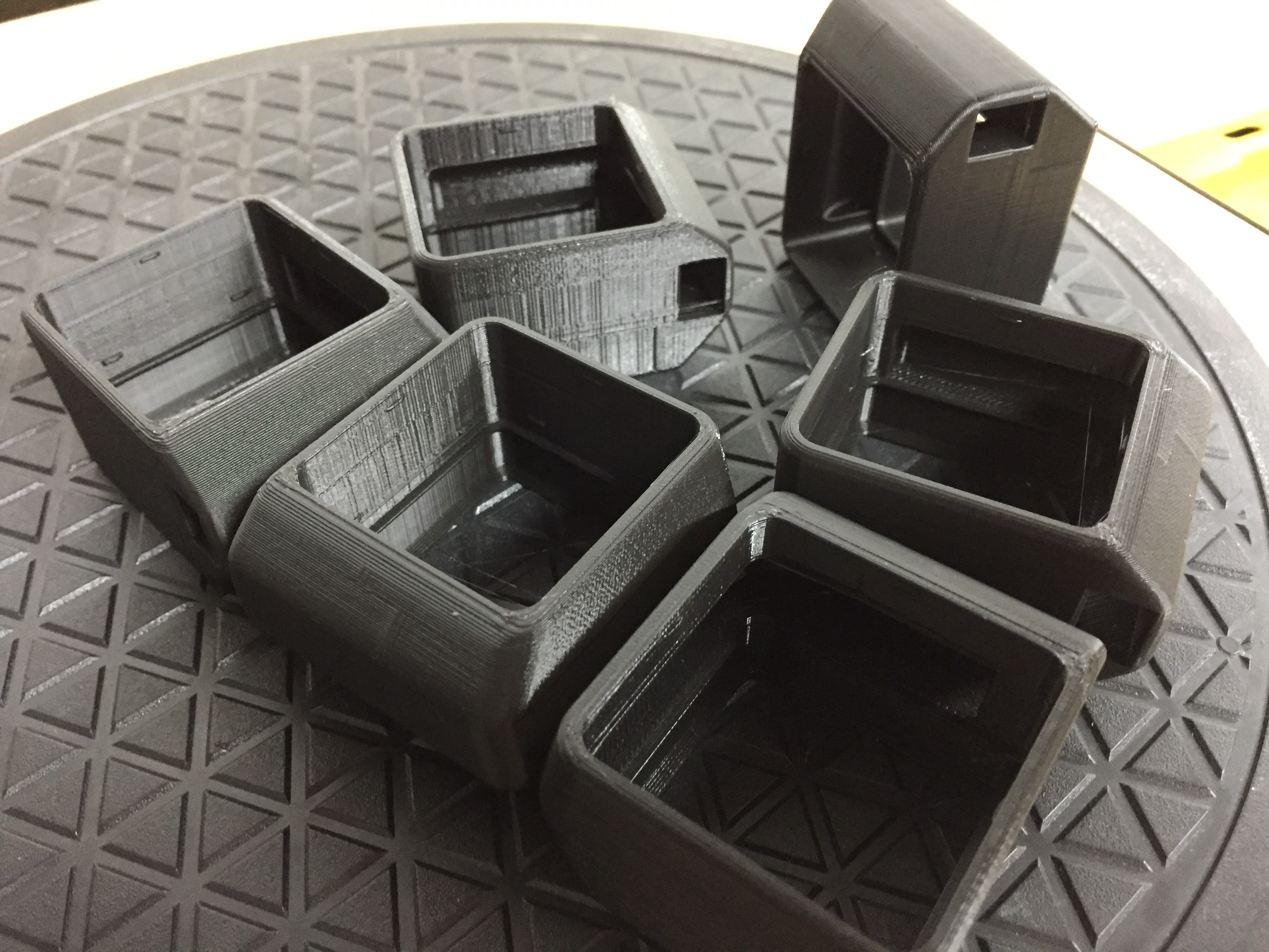 The latest print is a housing we use to make a small fume extractor with. It's a decently challenging print with small footprint, overhangs, bridges, and little latches on the inside.