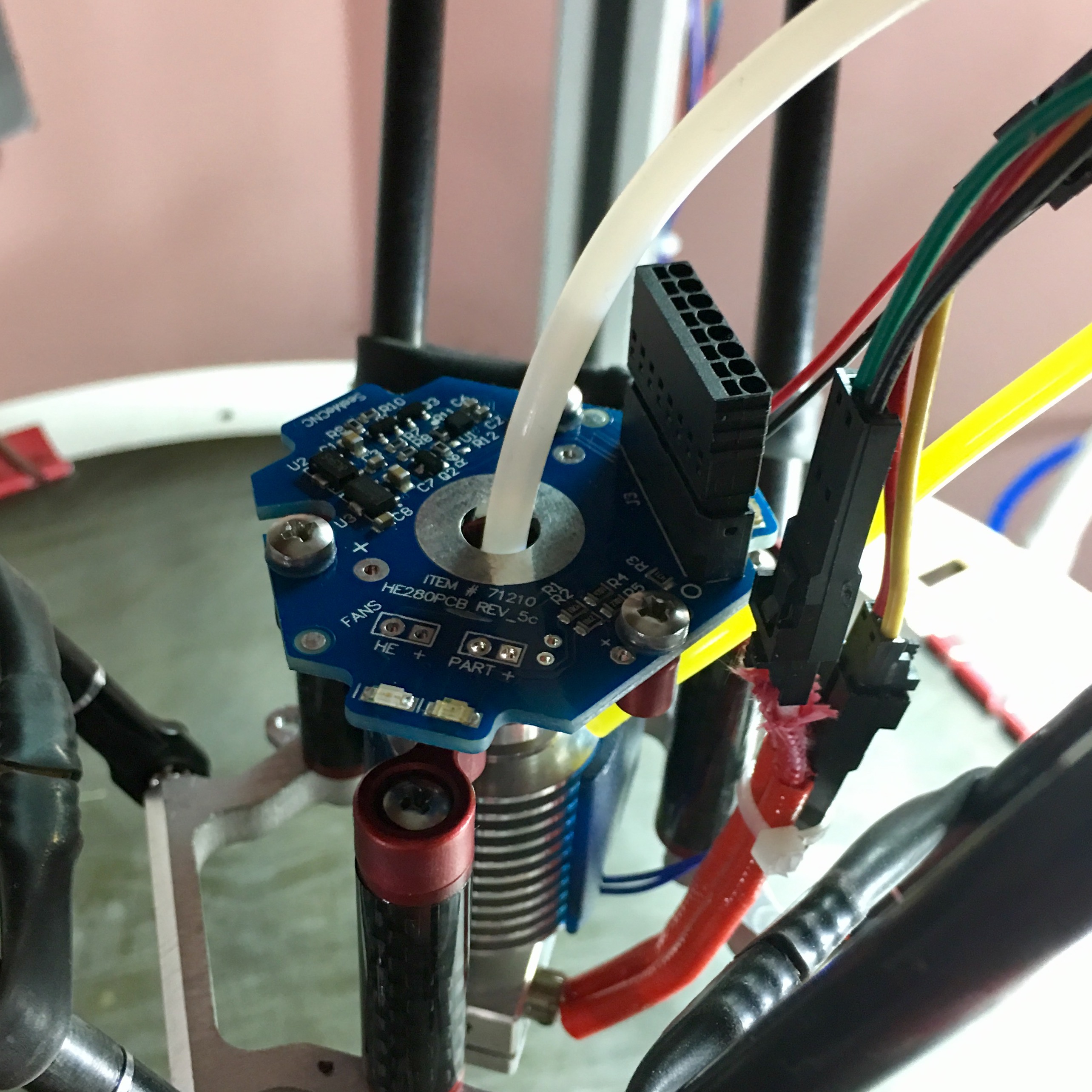 mhackney wrote:Basically. It will need the HE280 connector on one long edge and pads for the 8 wires on the other. The processor chip and 5v regulator (maybe depending on processor) and an LED to show the touch and relay messages on startup. I'm also thinking a row of four 2 pin headers to use for setting the sensitivity with jumpers and another to select NO or NC behavior. I can write this up and also make a drawing of the basic format and how I'd like to attach it between the whip and hot end.