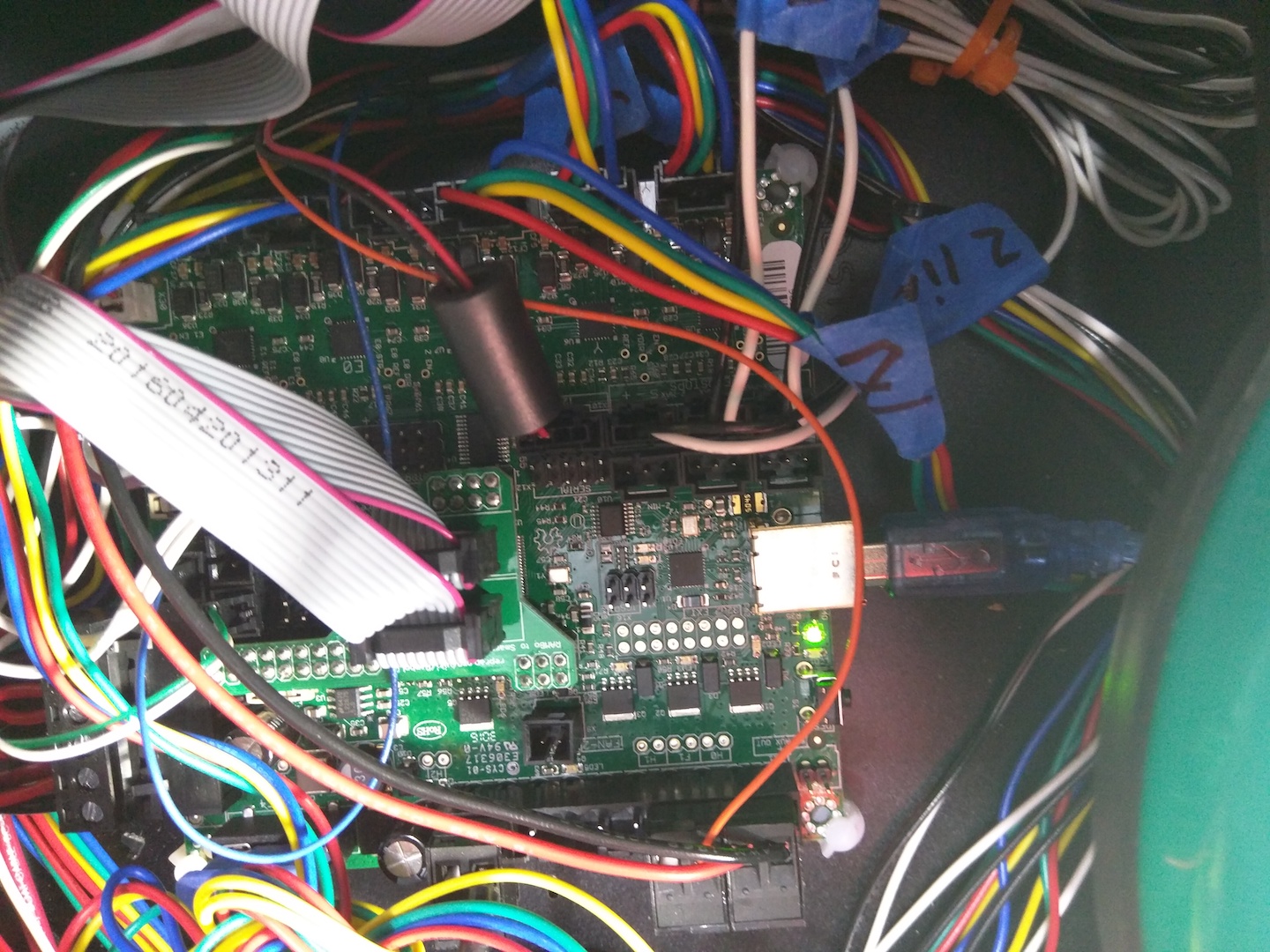 Modifications are part of what this is all about too. I'm interested in some test results you guys post with and without the ferrite. Where are signal wires related to stepper motor wires? In the RMAX v1, running end stop wires up the tower with the extruder stepper wires guaranteed shifting layers. The current in the stepper wires induced a false signal in the end stop circuit. So keep your stepper and signal wires separated. This is why you do not probe with hot end on.