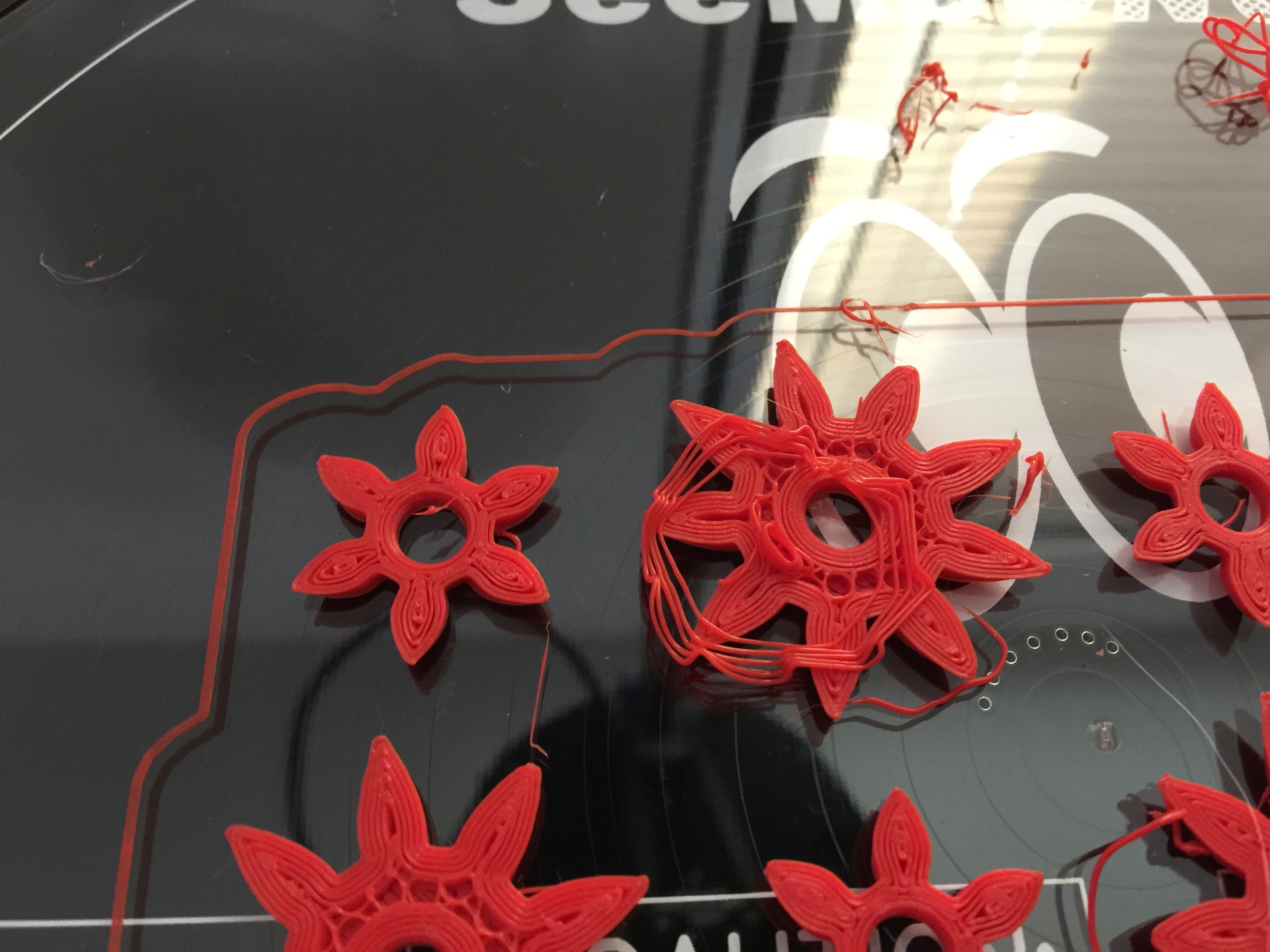 I've been printing on bare glass with no problems up till now, but I guess it's time to look at installing that FabLam I bought. I was printing a geared cube from Thingiverse (http://www.thingiverse.com/thing:213946/#files). The individual gears and center-piece were all still adhered, so my guess is that one or more of the small pins in the lower right let loose from the bed and then it was off to the races. Too bad as I started the print and watched the first 4-5 layers go down before heading to bed. This couldn't have happened more than 10 minutes after I left the room...