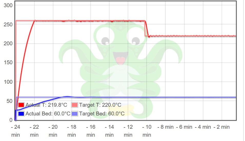 Did a quick test this morning to make sure that 220c was still stable with the new PID parameters. Seems OK to me, not as good as the original @ 220.