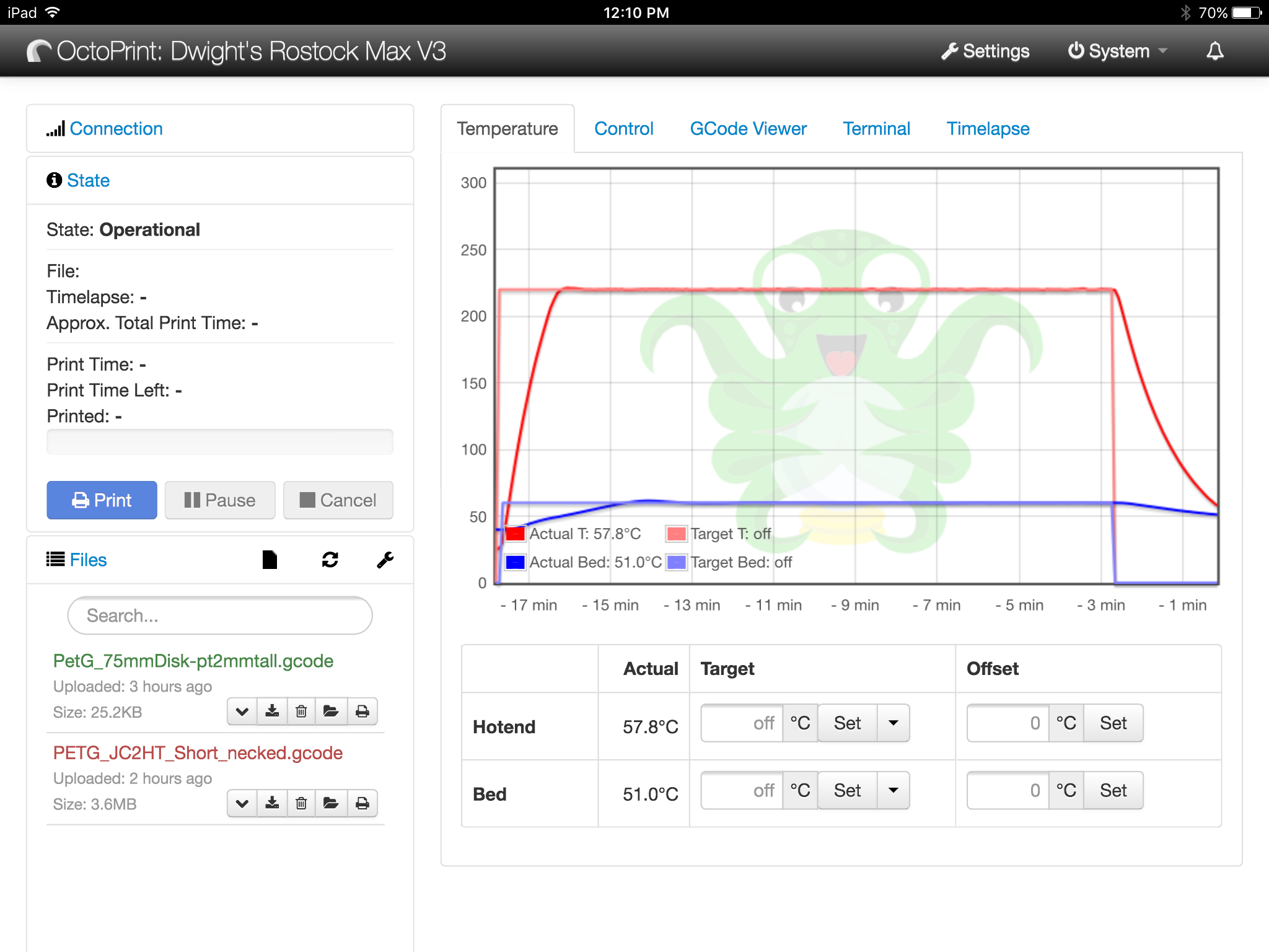 Now that the temp is holding within 1.5 degrees now, in the morning I get to do some more test prints with PETG....the same way I thought I was going to do today