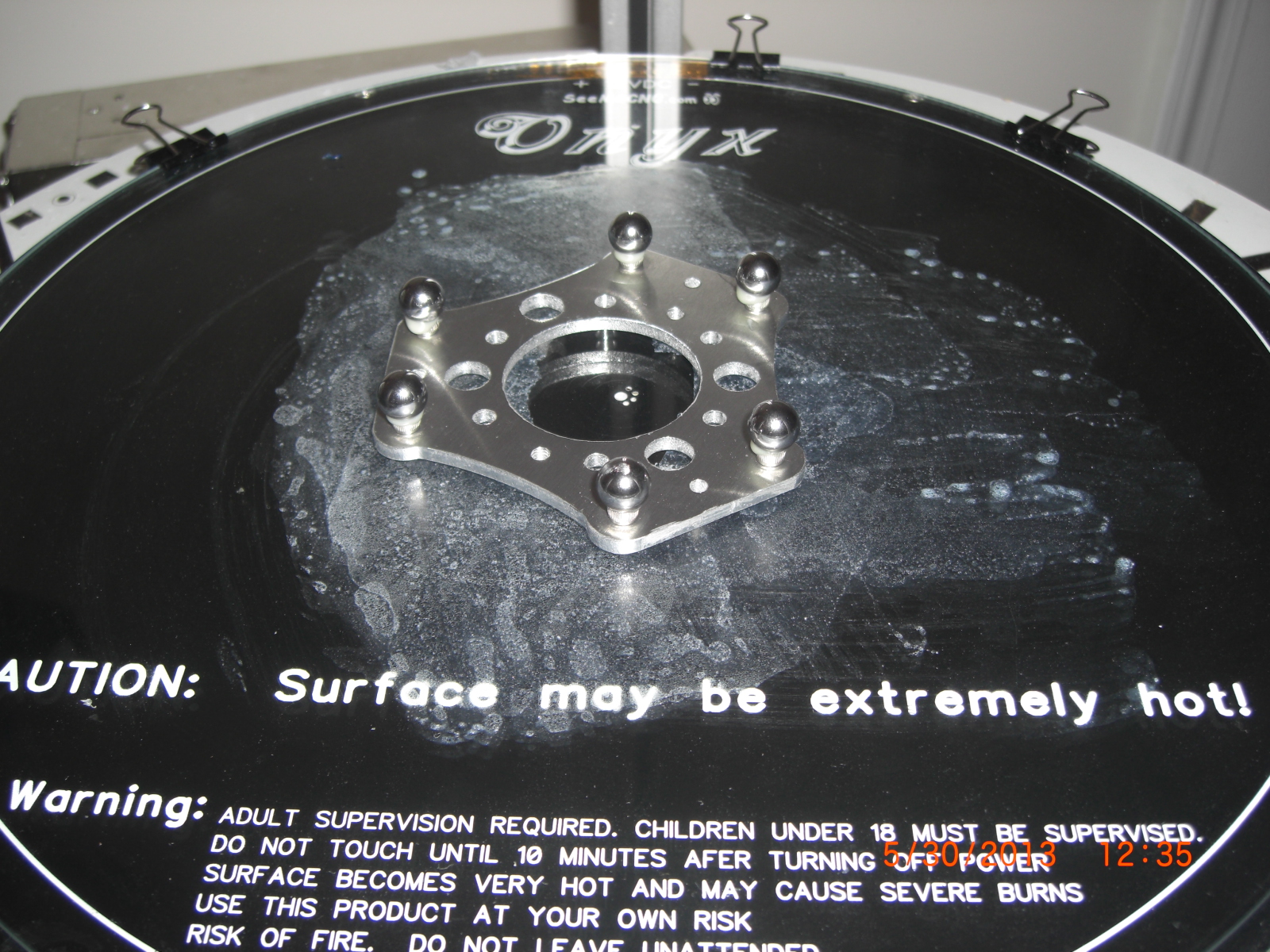 Mic 6 build surface; flat build surface ,even heat distribution and non flexing during heating cycles. downside, it takes longer to heat up this massive piece of metal with the onyx. around 10-15min but it holds temperature fairly well.