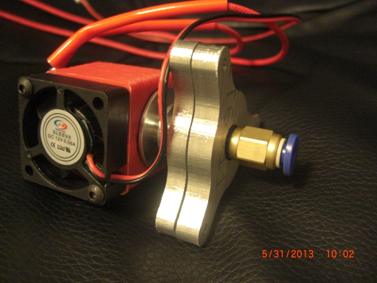 Included some photos of the new hot end mounted. At 293c this thing barely gets warm, unlike the stock setup which at 220, i could not comfortably touch the bowden adapter without getting burned. Although, I think I would prefer a higher cfm rated fan. Already on the hunt for one.