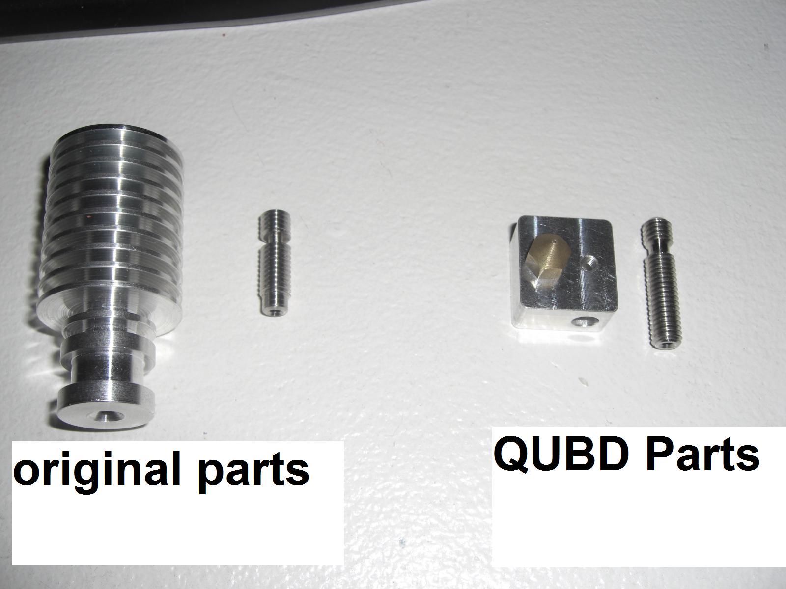 Qubd hotend has a beefier stainless steel tube and longer. Which would allow a larger size fan mount.