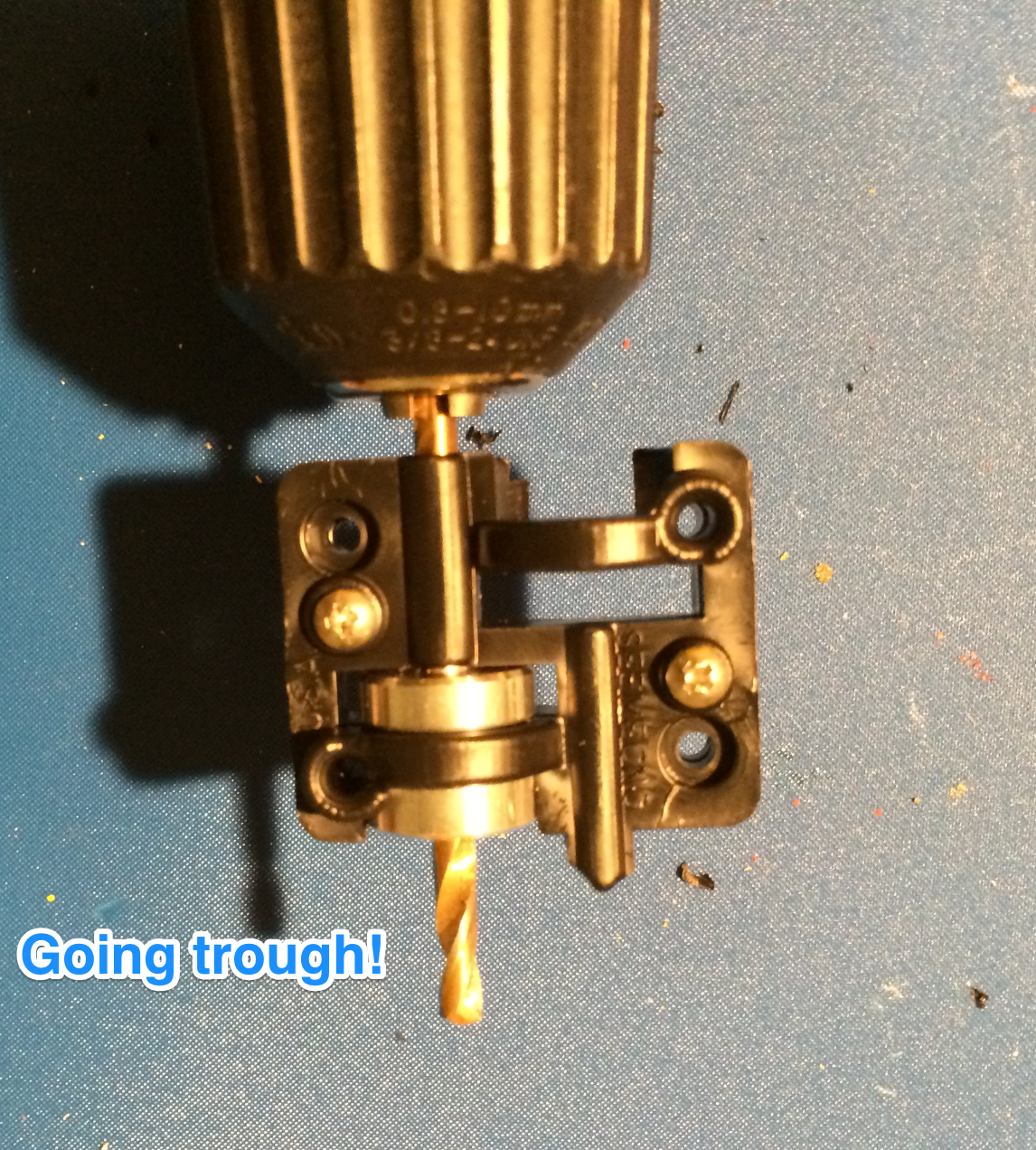 So, I decided to bore the EZ-Extruder (I remember mhackney mentioned this in other post) to make allow the bowden tube go through all the way up to the hobbed drive roller. See the pics