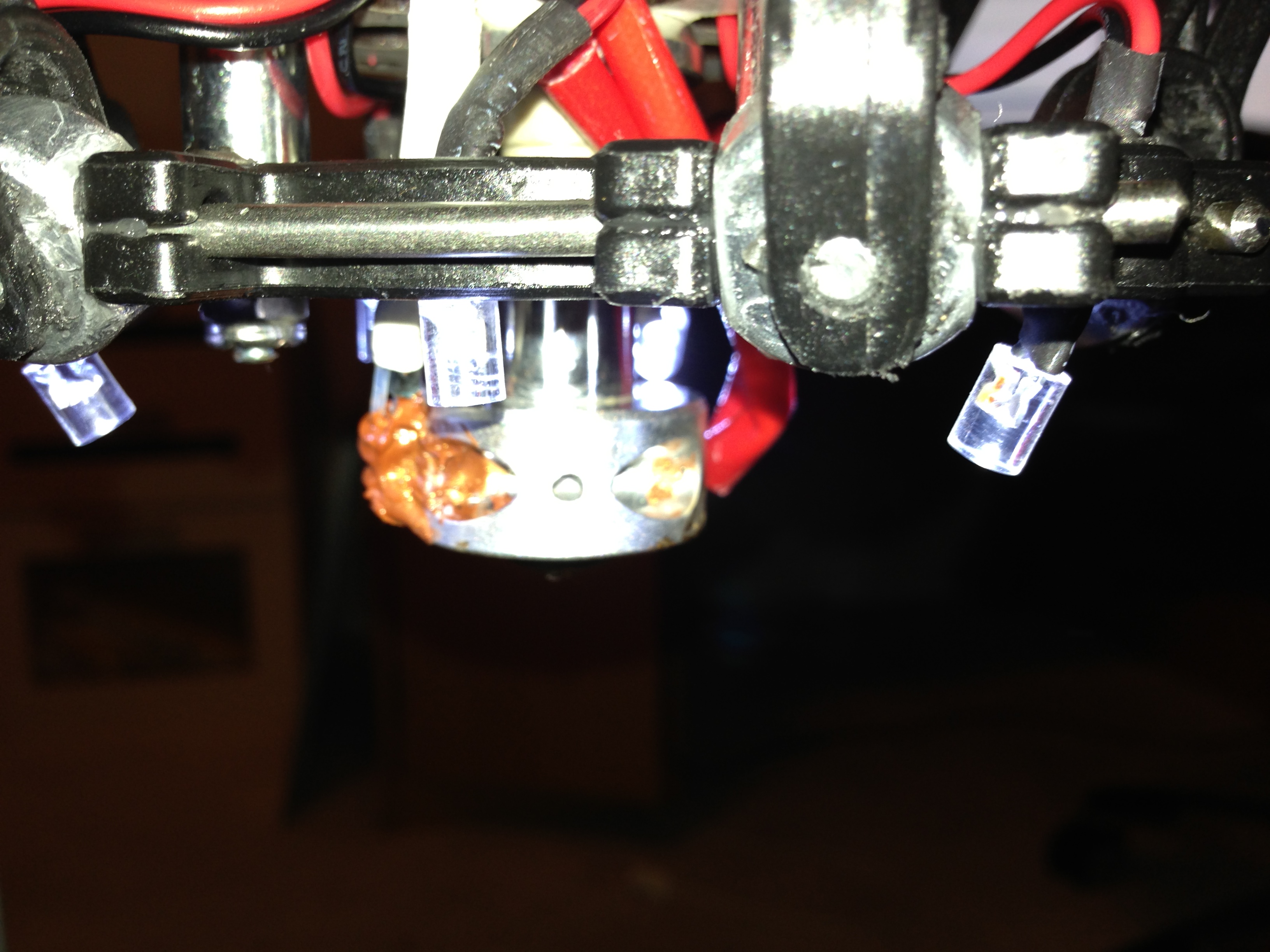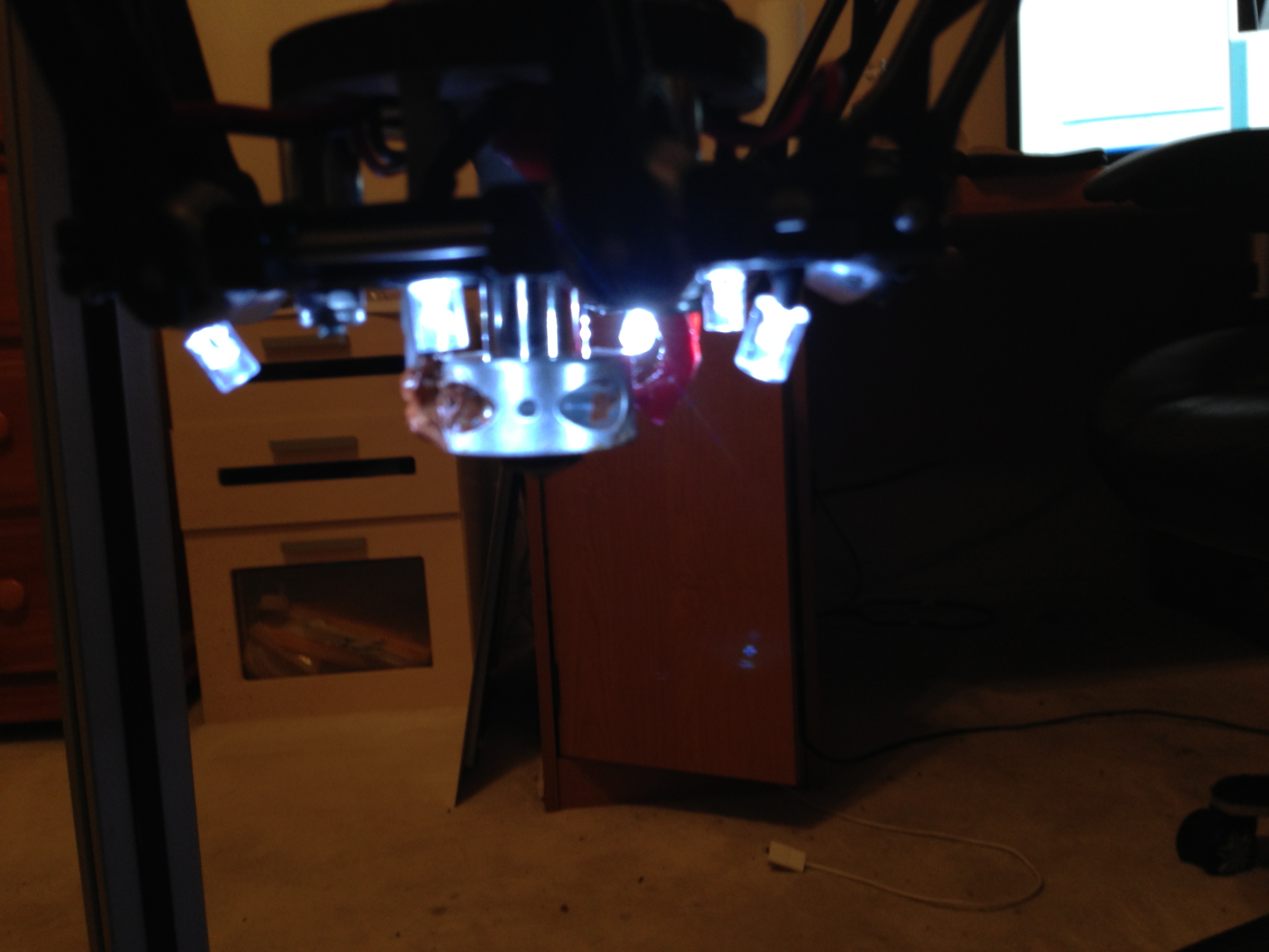 Took a break from the neverending leveling process and removed the delta arms for some sanding. While the arms were off I decided it would be a good time to install some LCD lights and the LCD. I installed some lights in the base as well but I forgot to take a picture of those.