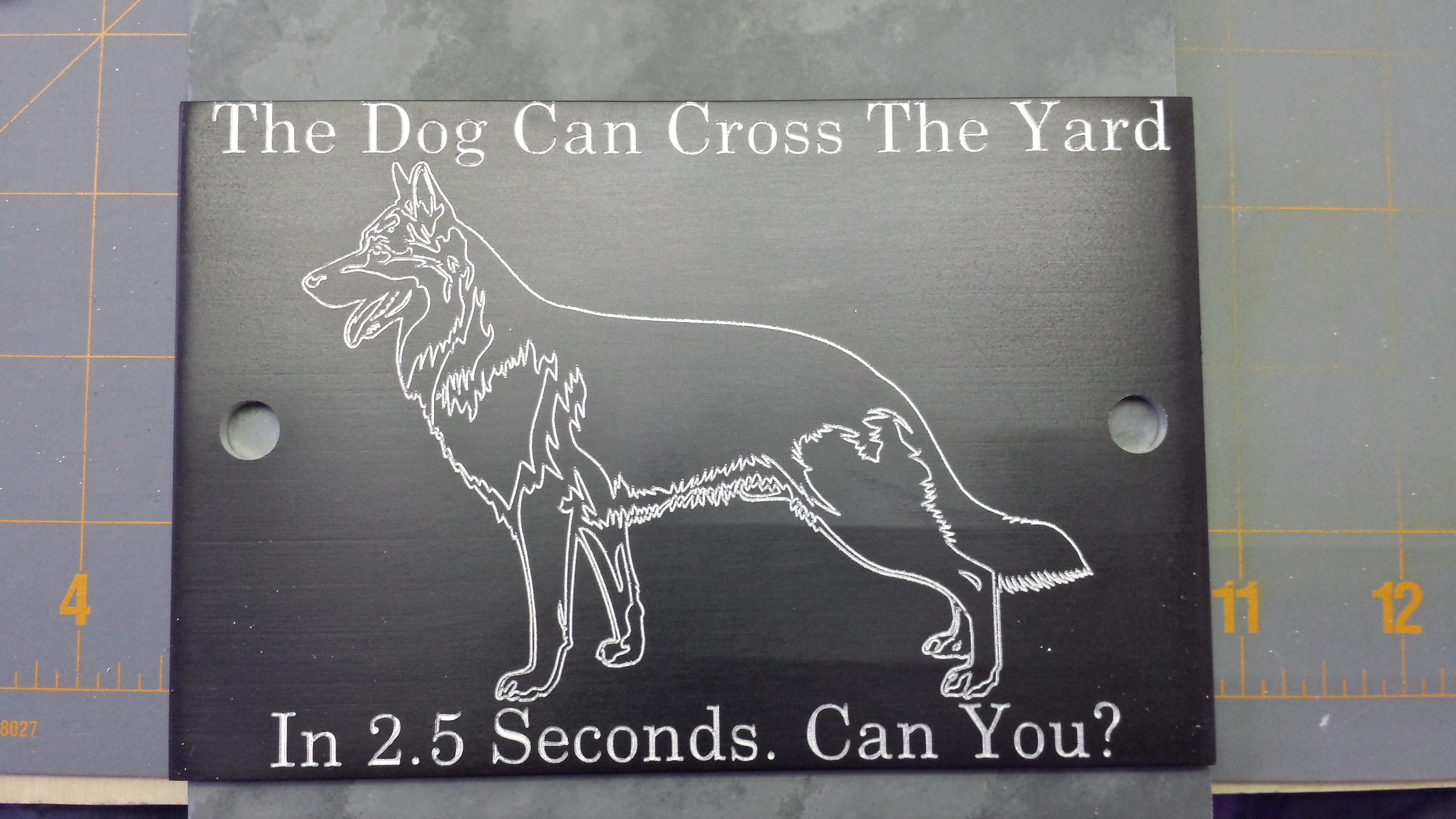 All four signs were done with the same endmill and it was still sharp once finished. The blanks were cut from the stock sheet then prepped and anodized black. Then mounting hole were cut with a 1.6" endmill and the sign was engraved with the 30 degree .2mm engraving bit.