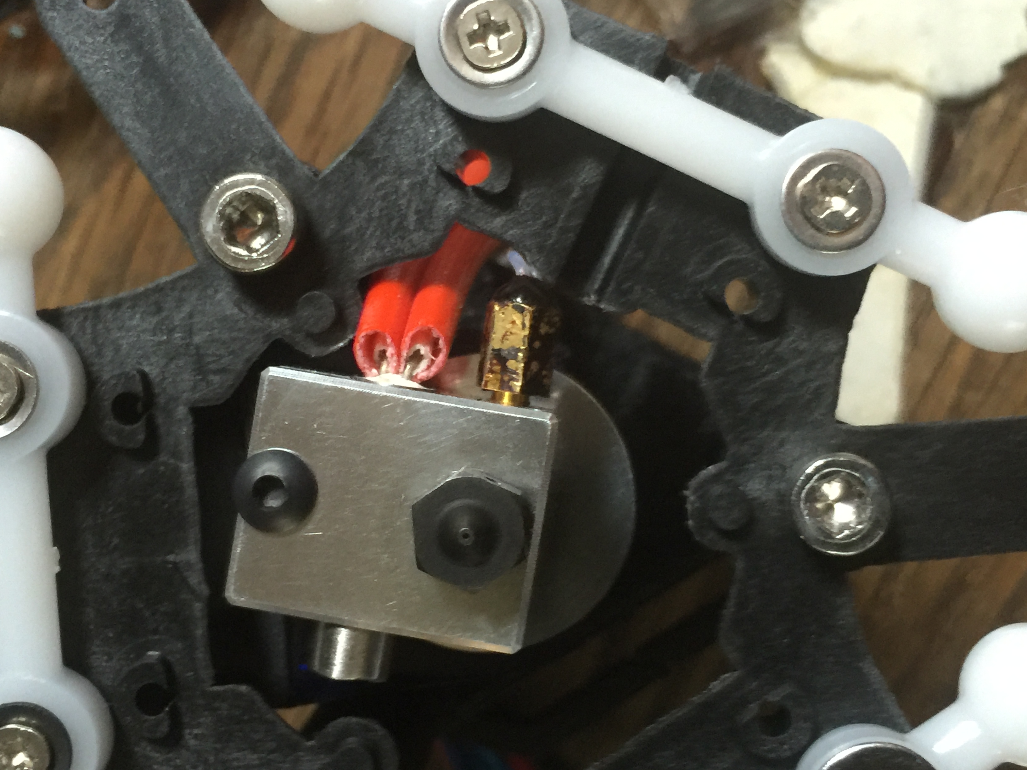 I _strongly_ recommend you replace the RTVd thermistor with the threaded one if you're using a heater cartridge. If the thermistor pulls out, that heater cartridge has the ability to melt the _aluminum_ portion of the hot end and you can imagine what those kind of temperatures are going to do to all the other much more flammable bits.