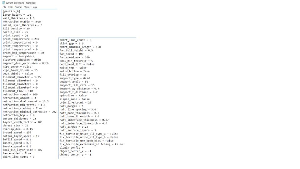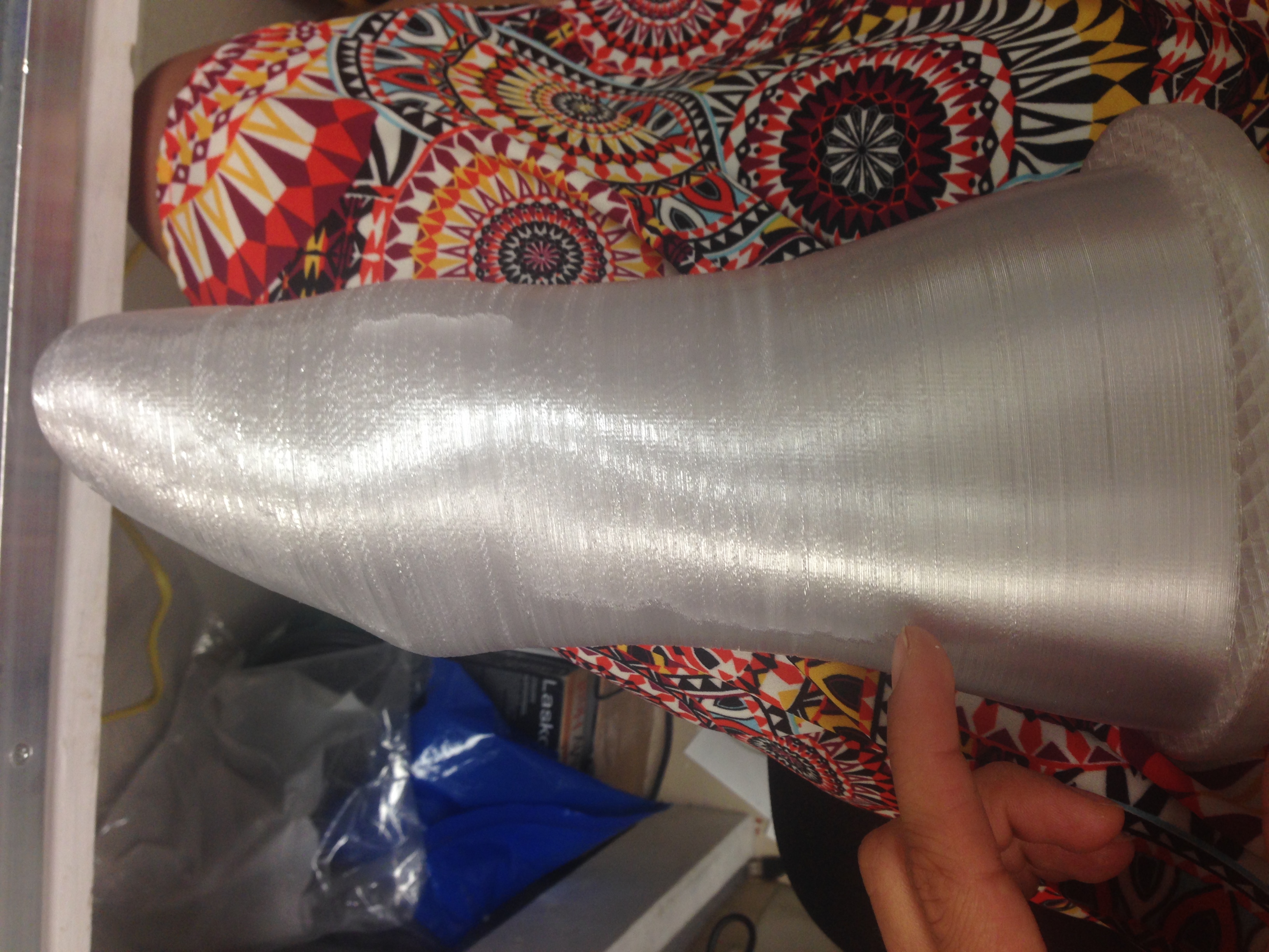 I am attempting to print a positive of my residual limb. I am printing on the Rostock Max V2, with Taulman 1.75mm Clear T-Glase. I am using Cura Slicing Software with these settings.