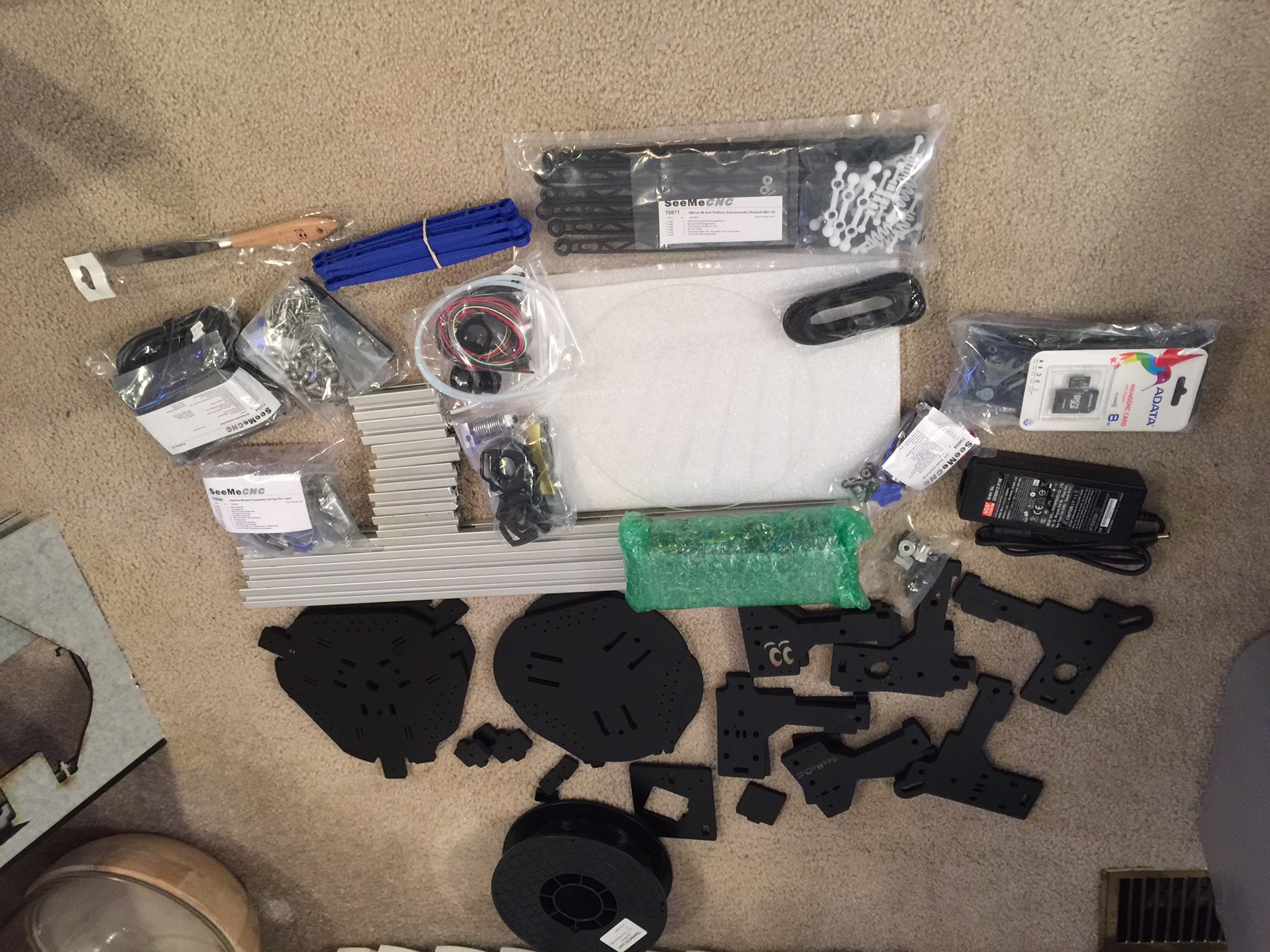 The box was full of goodies: After the second evening (approx. 6 hrs) And my first printed part: Total H2 build time - 11 hrs + software downloading and installing.