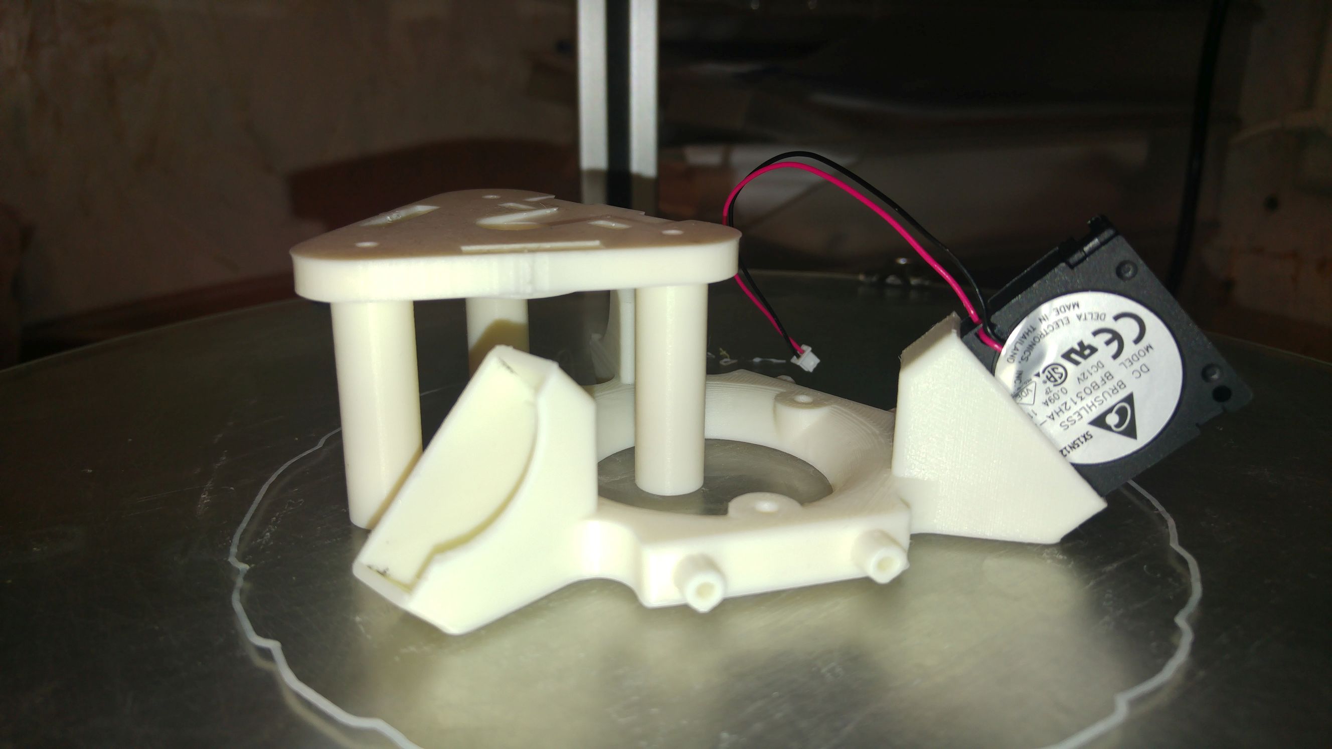 The fan assembly is originally jimustanguitar's design, but I found one adapted for the ball-cup joints.Treat for my V2