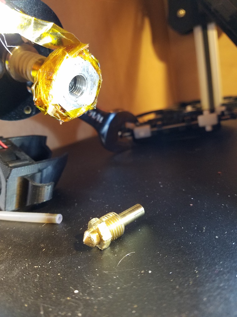 Anyway, I'm embarrassed to admit I just spent 2 hours trying to replace my hot end nozzle. I simply cannot figure out how to get this new nozzle in. It is a very, very tight fit, but that's true of the nozzle I took out. I cannot get the threads to catch. I am perplexed on how to overcome the non-threaded portion of the assembly. What am I missing?