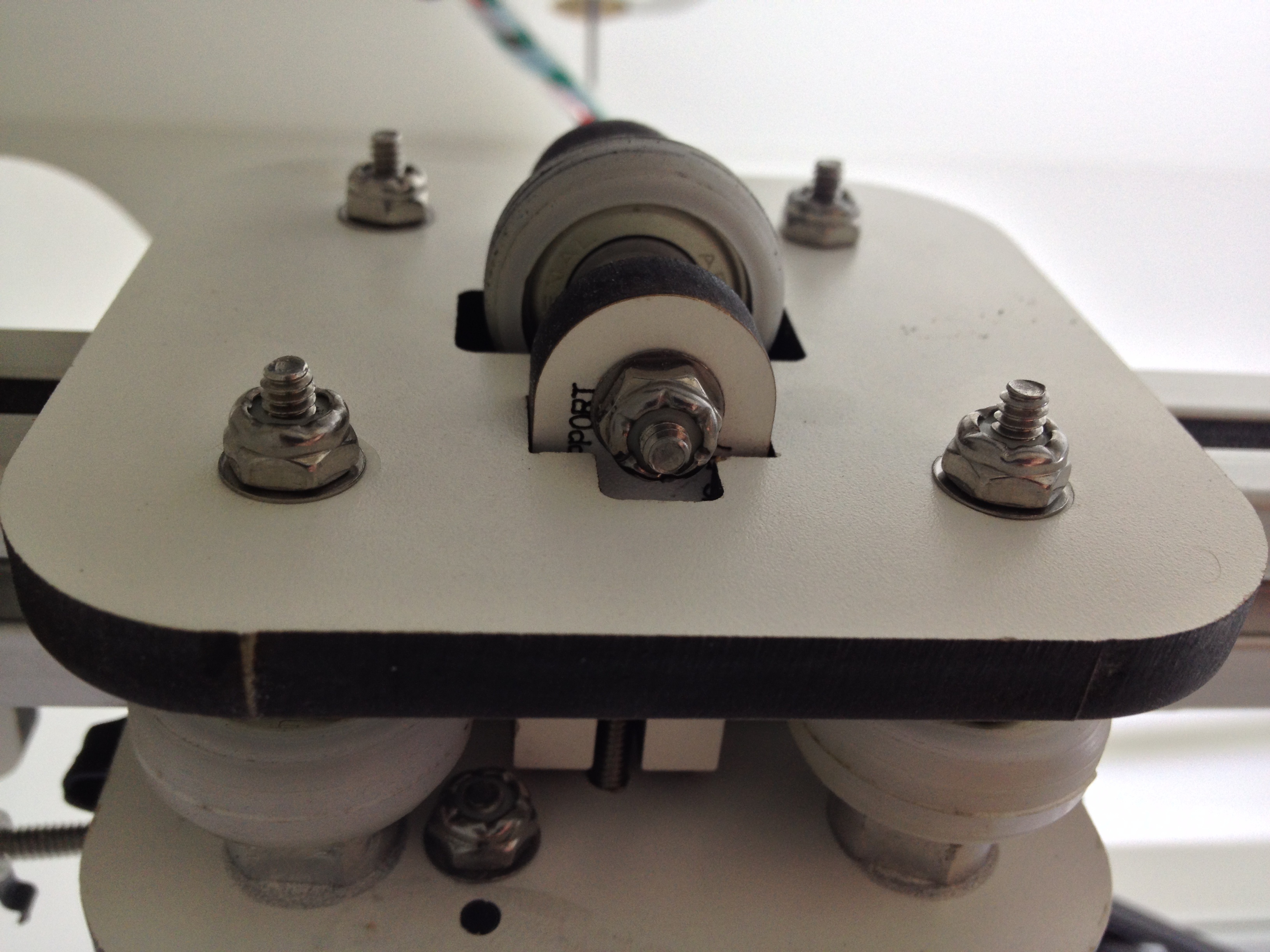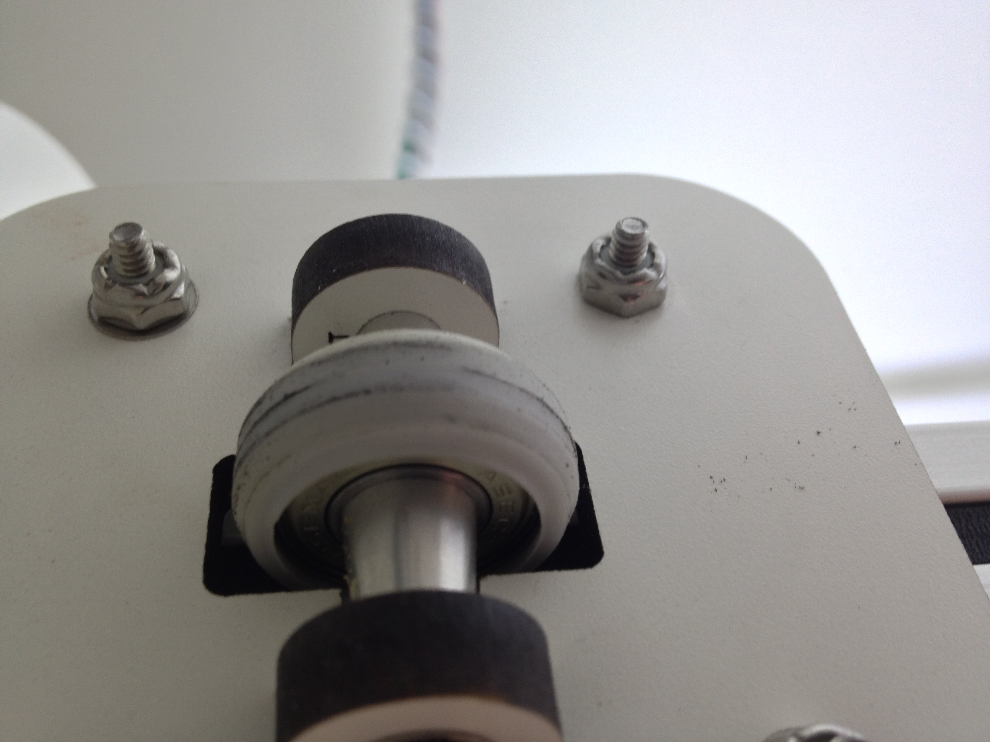 I have no black marks on two of my acetal bearings, and a slight dark coloration in the middle of one of them that indicates it could have been in contact with the belt in the past. It's nowhere near as much as your photo shows, though. I would take care of that ASAP.
