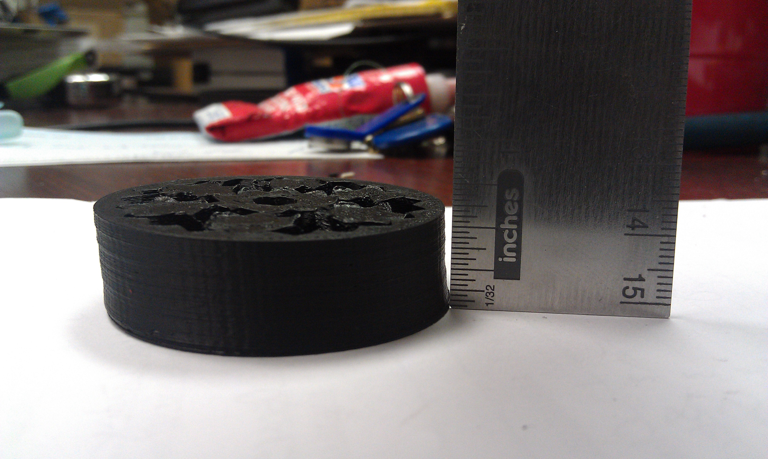 1.75 ABS 210c, Glass with hairspray 75c, .2 layers, .3 fill, 60 feed, 4.8mm retract/35 speed/6mm lift/.1 extra on restart, .35 J-Head, Slic3r 9.10b, Repetier firmware v.90c