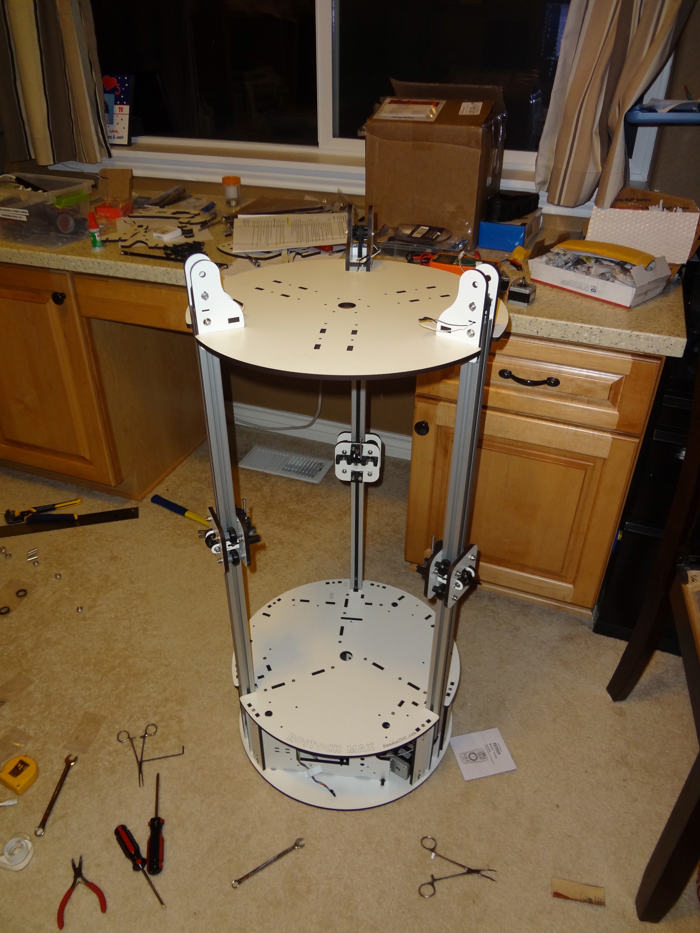 And then I installed the arms and the effector platform. Yes, I cheated from having to do all that sanding by using the Trick Laser arms I ordered