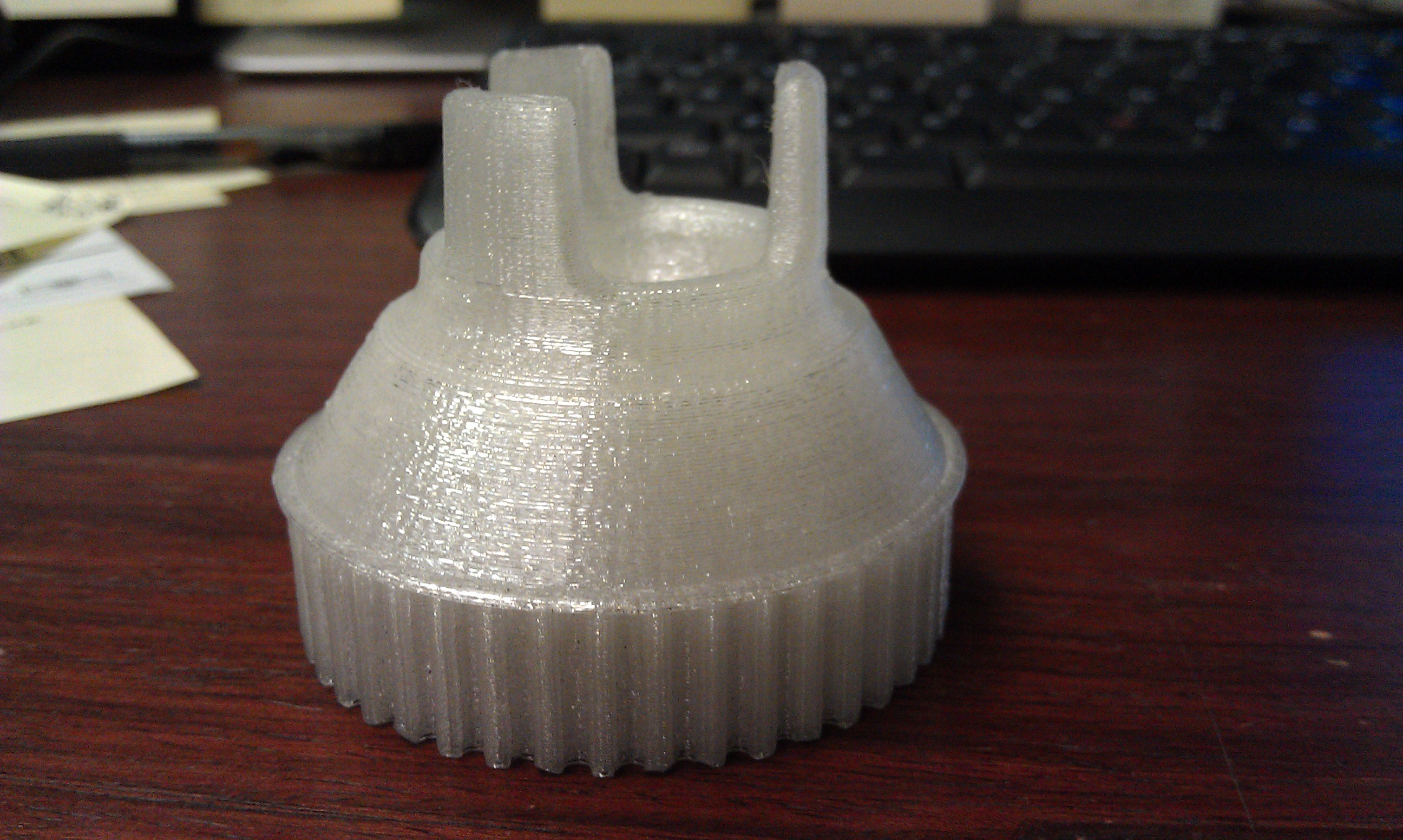I see some of you have been having a bit of luck with the Taulman T-glase and had a few questions. I started playing with a roll of the 1.75mm t-glase about 2 days ago and have had minor success. My first trouble had to do with very inconsistent filament diameter, which taulman is making right by sending me a whole new spool (in some areas the filament couldn't even fit through my bowden tubing), however, I've found a few good stretches of filament in the spool and have been running through some prints, but I keep clogging/jamming my hotend and I can't figure out why. I'm running my hotend around 218-220 which seems to be extruding well. I set my retraction below my abs level of 4.5mm which worked great for abs, but I feared was too high with the lower melting temp of t-glase. I set my retract all the way down to 1-2mm range. I just can't seem to keep it from clogging. I'm running a .5mm nozzle by the way, and I've tried thicker layer height as recommended per Taulman. I am not running a PEEK fan, but was told by the guys at Taulman that they don't run one with their stock seeme hotend either and have no problems. Any chance you guys could share some of your settings with me and I could compare notes and see if I can figure out what I'm doing wrong? I also would be interested in seeing if you guys have any thoughts on what might be the problem as well based on what I've said. A couple of notes...I successfully made it through one whole print that was hollow with only one perimeter, everything else is throwing me troubles. I will note that the one successful print was beautiful...stronger than ABS, super smooth finish, no warping, and a really pretty look, especially in the light. Also, Taulman's support has been wicked awesome about getting back to me super quick, making anything wrong right again, and giving me some tips and pointers about the material. Let me know what you guys think.