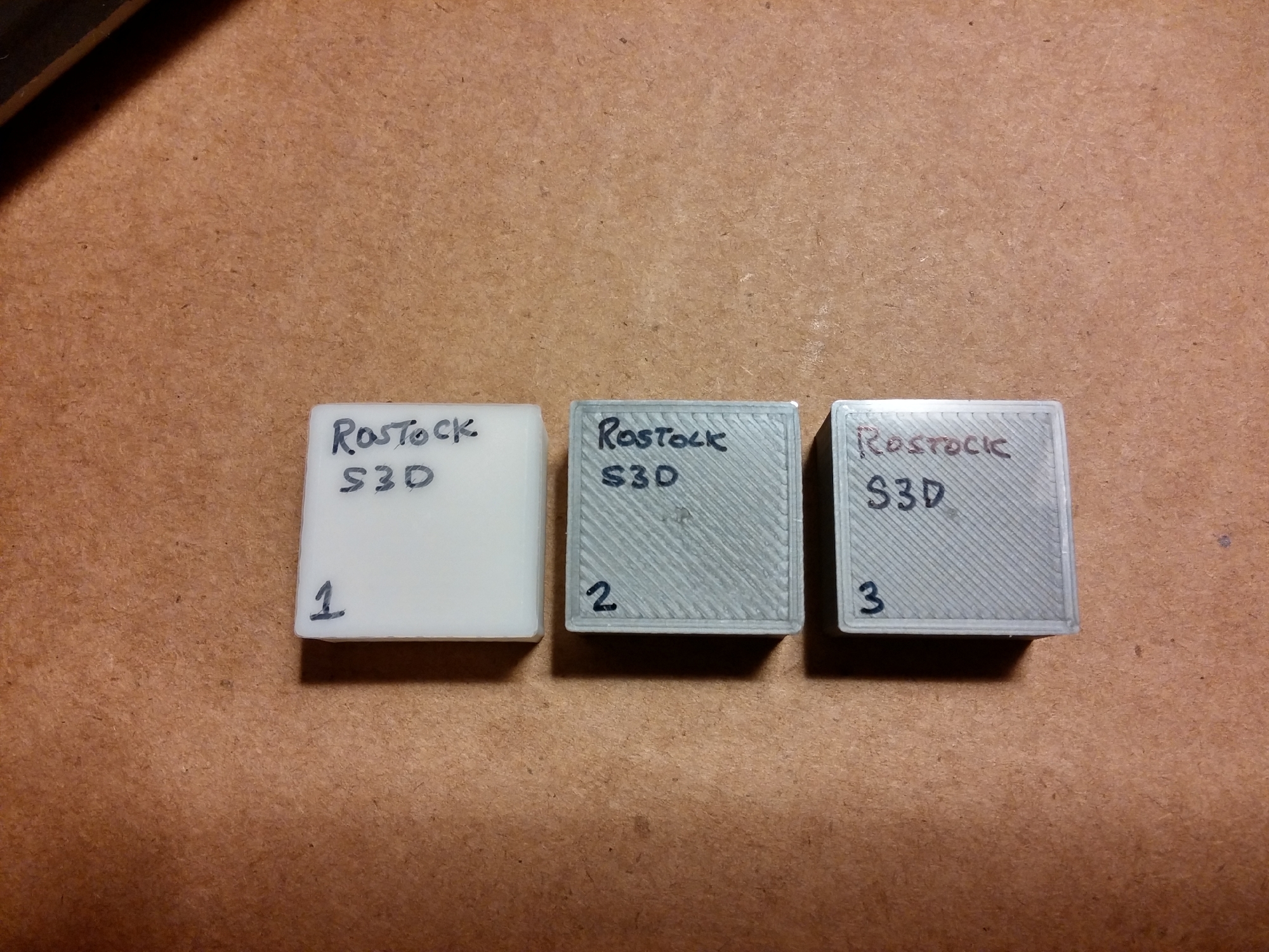 Anyway, attached some pictures of my cubes that turned out well and my Simplify3D profile in case anyone would like to use it or critique the settings. The white filament was PLA from Filament Central. Very good stuff. The grey PLA was from SeeMeCNC. I have not printed ABS yet.