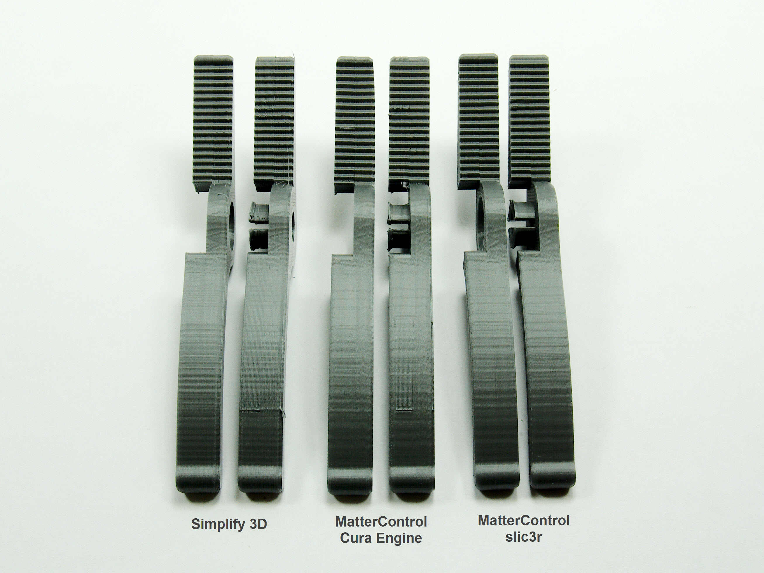 I noticed you used the Mattercontrol / Slic3r and Mattercontrol / Cura combination but I am curious as to why you haven't tried the Mattercontrol/Matterslice configuration. Tried that option yet?