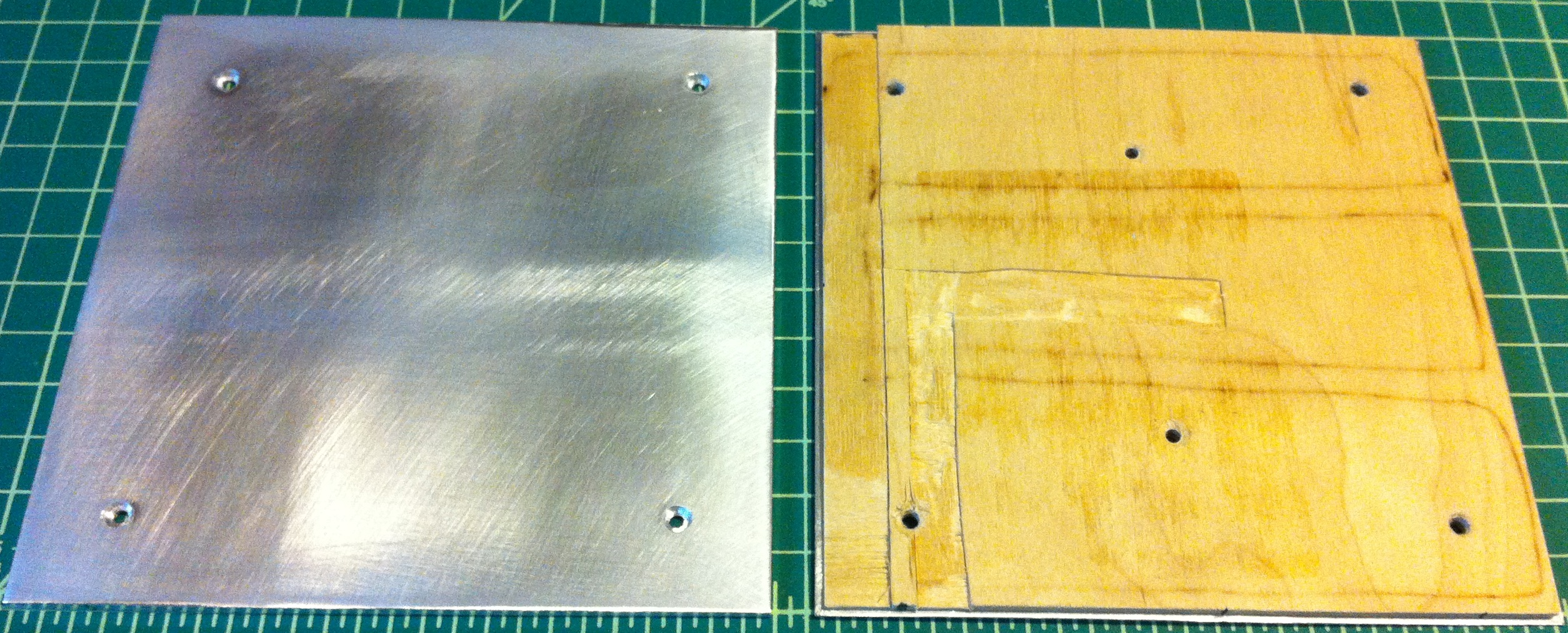 Note: This is necessary only if your thermistor/leads protrude too far as mine did - Place second aluminum sheet on top of birch plywood and build plate