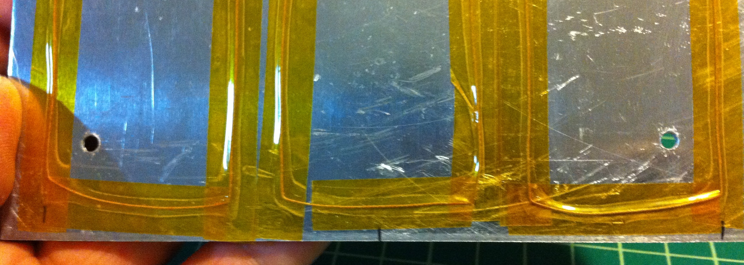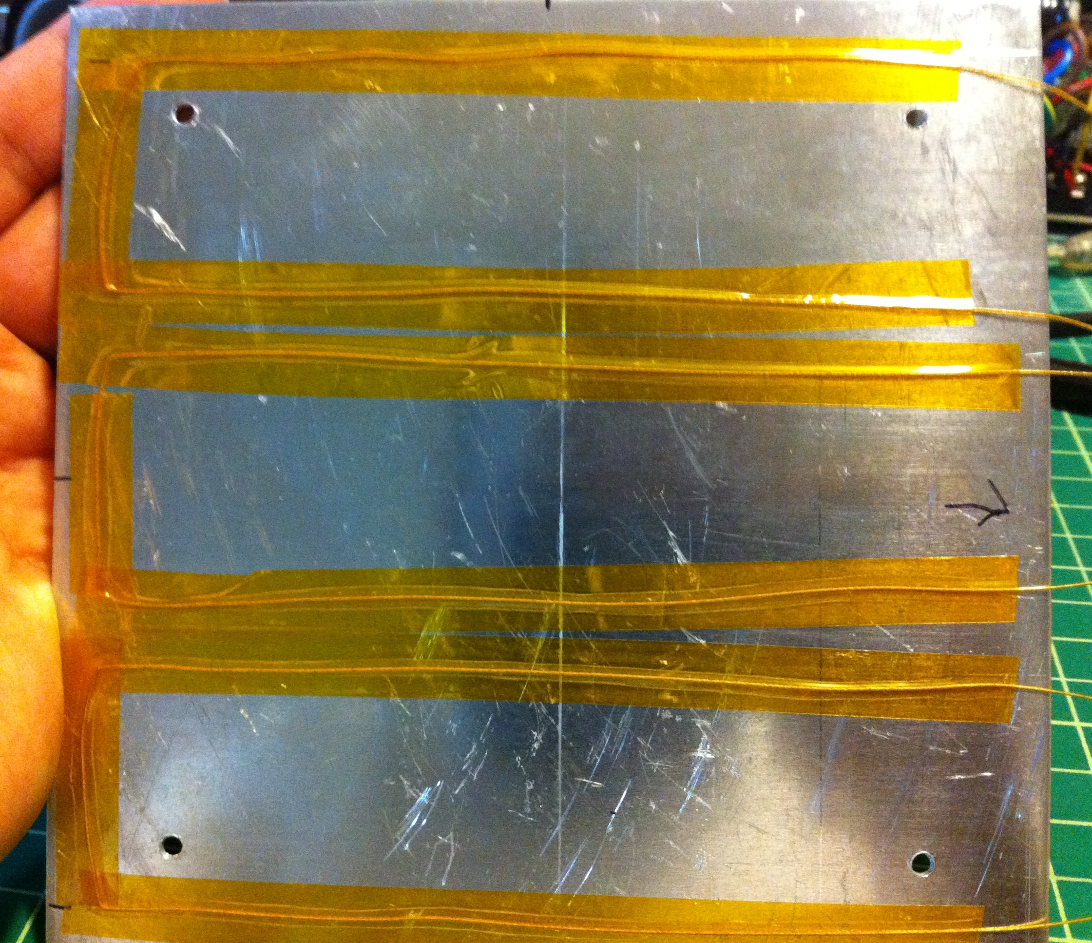 Note: At this point I taped ALL of the sheet with kapton tape, this is optional, but assures me that everything is insulated well - Make a cut out/recess for your thermistor and leads in your 1/8" birch plywood (see picture for details)