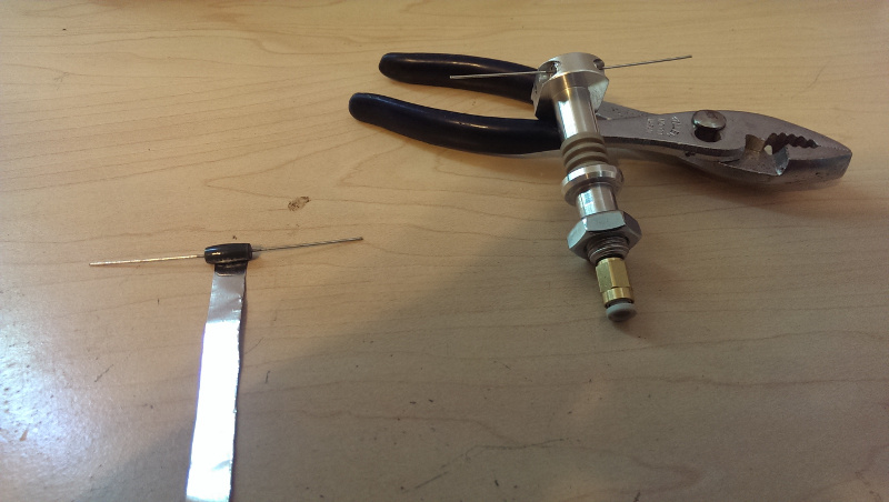 One problem is the wires broke off the crimped pins for the hot end thermistor going in to the RAMBO board. There is only one 1x2 latched female housing with the kit. Does anyone know how to remove pins from the connector with detached wires? I'm going to try an awl to push the pins out and a needle to push the metal pin latch down. Didn't have success trying to pry the pins out with my smallest needle nose pliers.