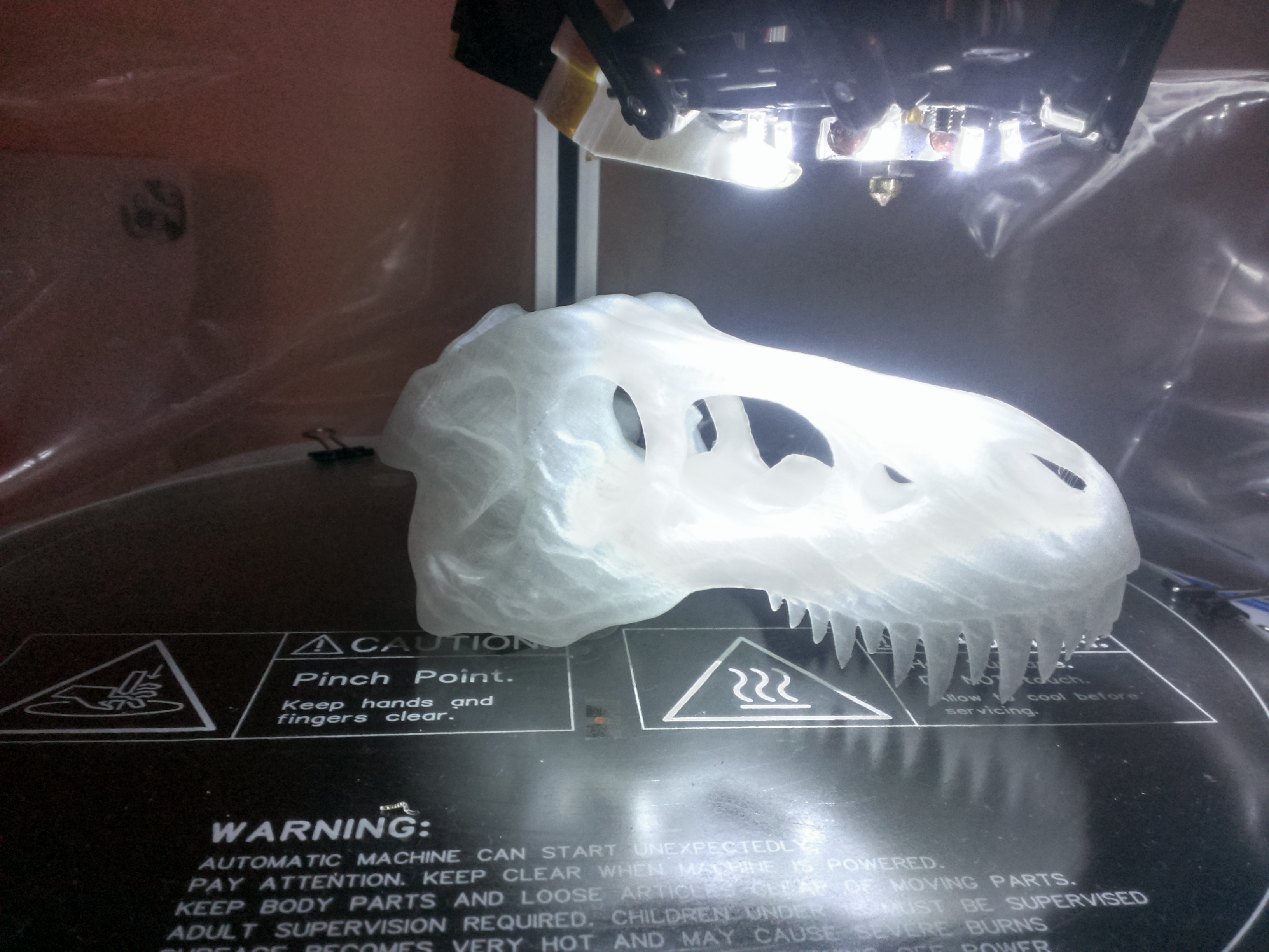 Well folks, I'm currently struggling with some PLA printing. It seems that the extruder motor gets just hot enough to soften the PLA and let it get chewed up and jammed in the area just after it feeds past the hobbed bolt. I'm going to try running a box fan at the extruder motor/PLA itself to see if that helps at all. The vegetable oil trick (rubbing it on the filament every so often) seemed to work for a little bit, but the print I'm about to attempt is close to 10 hours. Short of designing a small pod that holds a sponge soaked in oil, that allows filament to pass through it, I'm about out of options with this particular brand of PLA and may just have to buy a new roll.