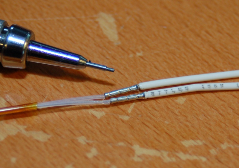 I took the opportunity to use that fancy new crimping tool with some of the crimp tubes I'd bought a couple of years ago when I was working on the TAZ hot end. As most of you know, you can't solder the heating resistors - the solder will evaporate over time and you'll get an intermittent or failed connection.